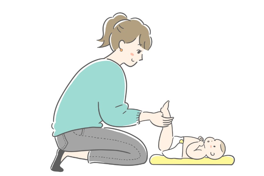 オムツや着替えなどの赤ちゃんのお世話や授乳の姿勢は前かがみ
