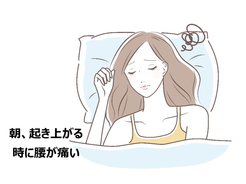 主訴:腰痛。来院時、出産後8カ月、一人目出産後から徐々に腰の痛みを感じ始め、起床時に激痛が走る。
