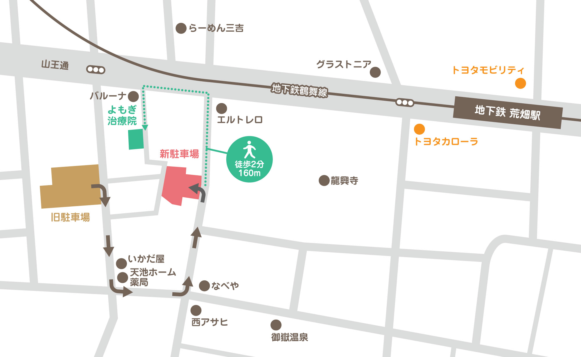 今まで使用していた駐車場(天池駐車場)が閉鎖のため、2/10(月)から駐車場が使用できなくなります。