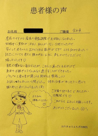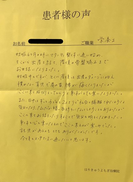 妊娠中から産後の骨盤矯正までお世話になりました。