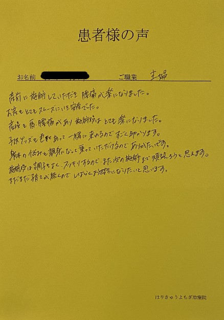 施術中も楽しくお話をして頂き、安心して施術をうけることができました。