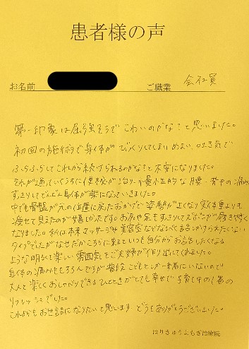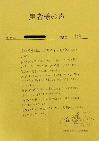 毎日調子良く過ごせたのは、こちらでの治療のおかげです。