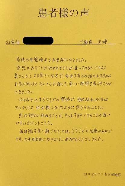 産後の骨盤矯正でお世話になりました。