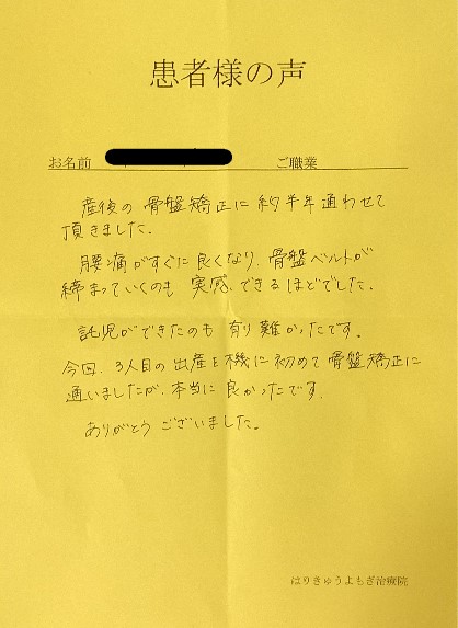 今回、3人目の出産を機に初めて骨盤矯正に通いましたが、本当に良かったです。