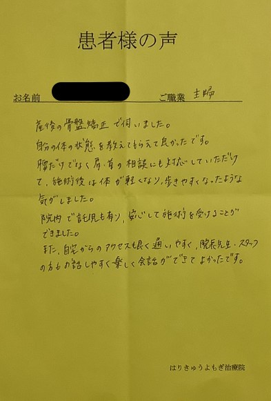 産後の骨盤矯正で伺いました。