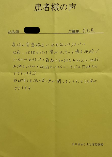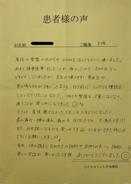 産後の骨盤矯正でお世話になりました。
