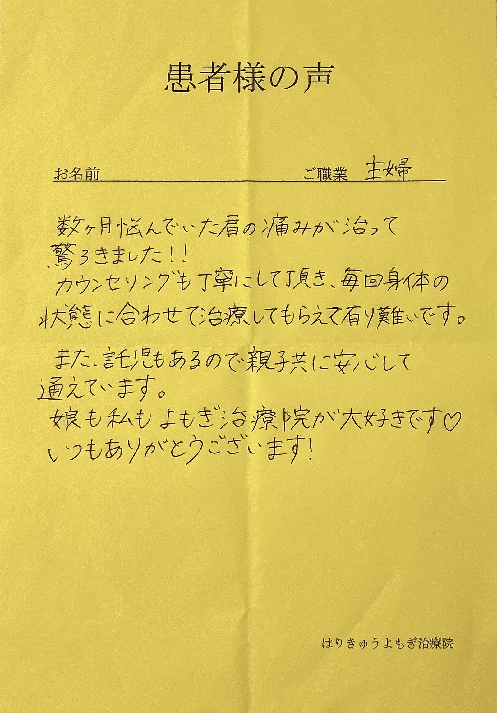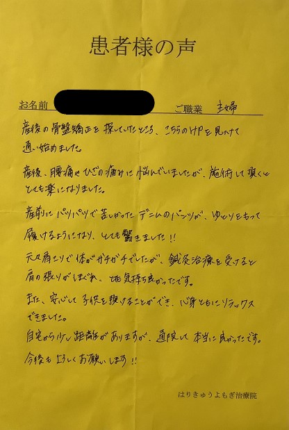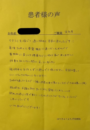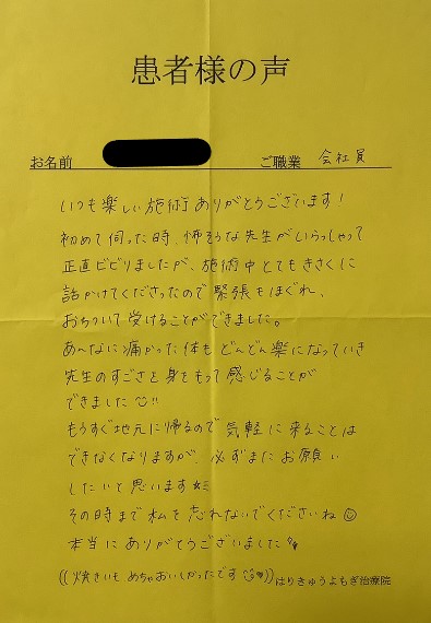 本当にこちらの治療院に出会うことができて良かったです。