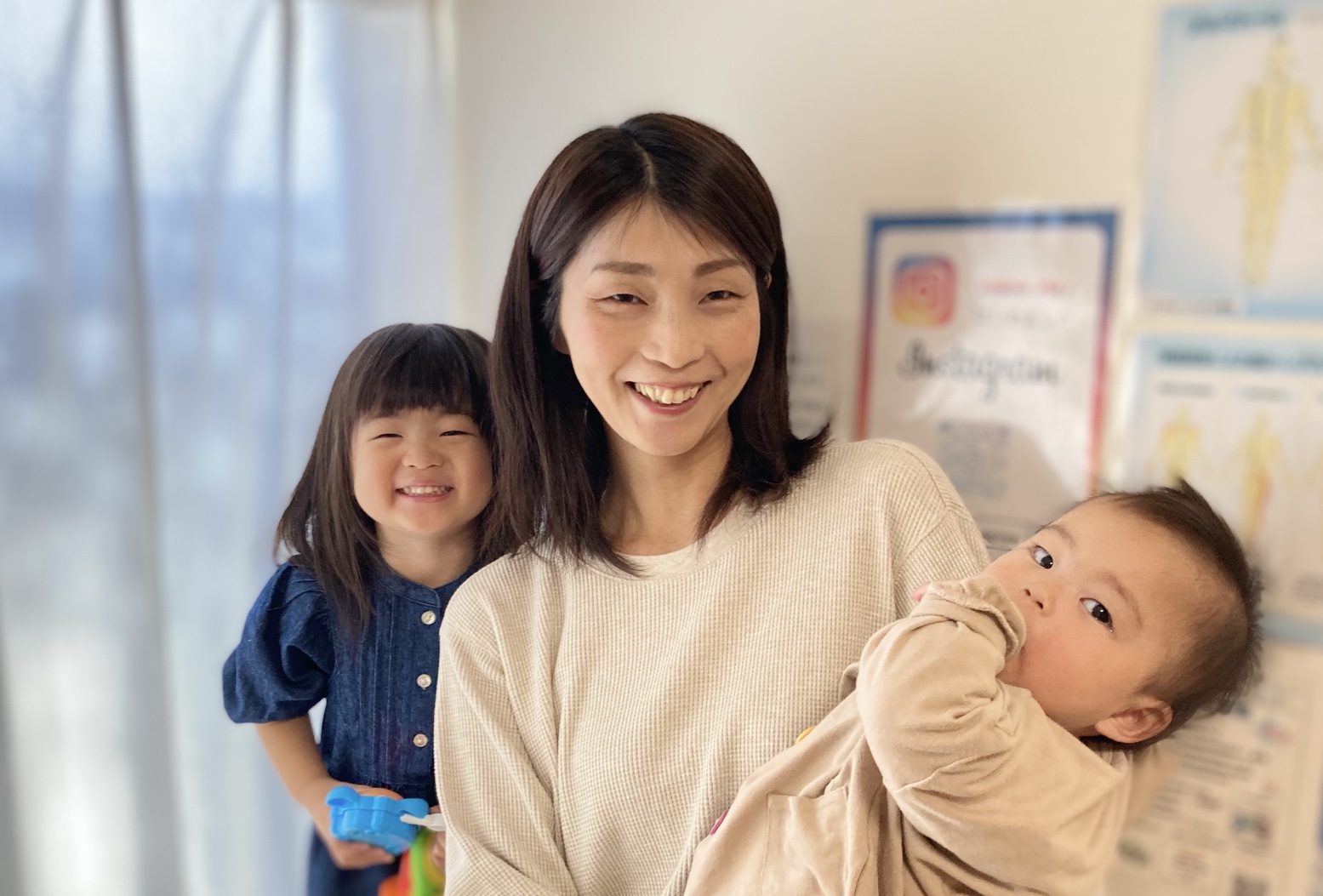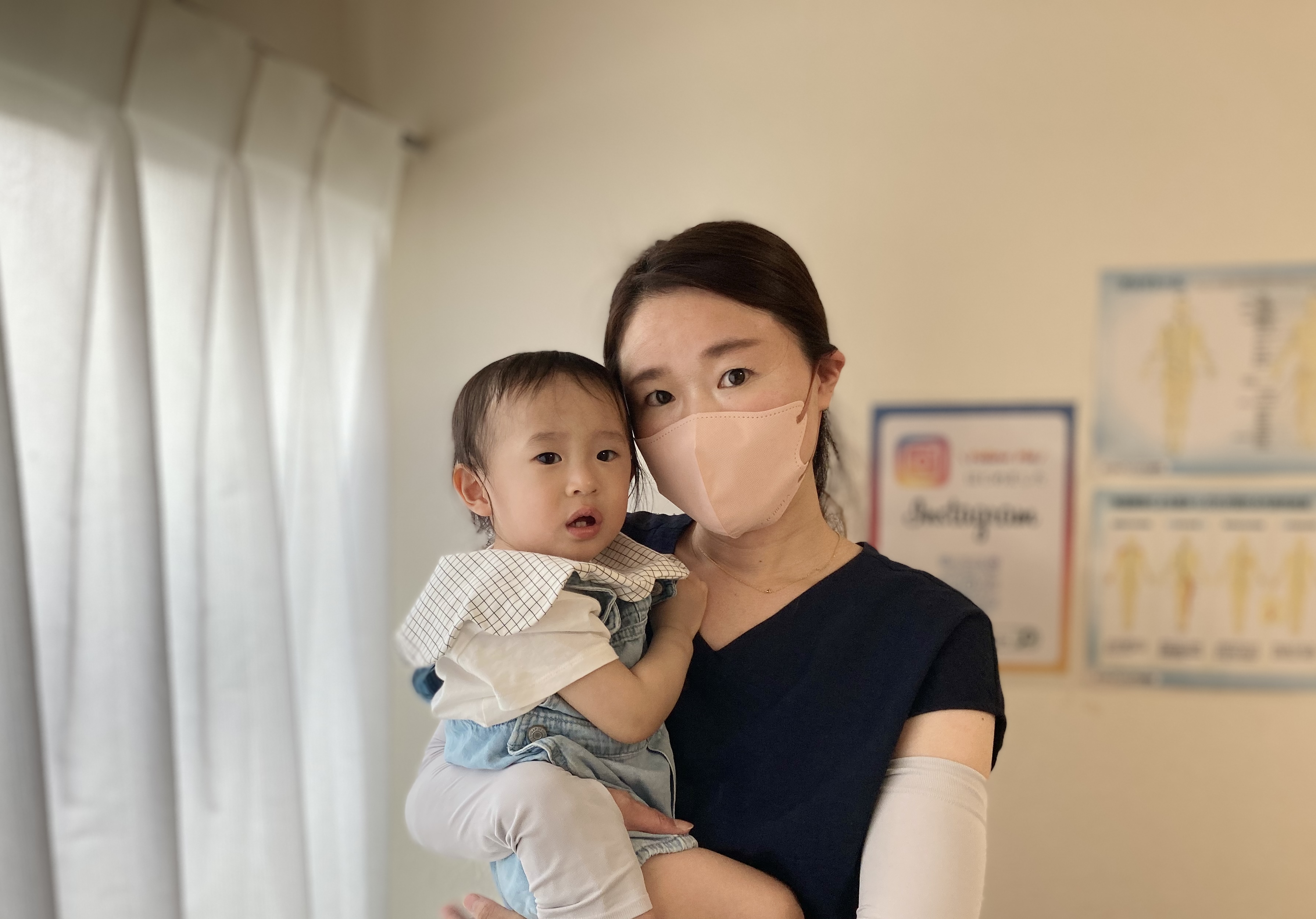 産後の骨盤矯正を慢性的で強固な肩こりに加え、授乳や抱っこで凝り固まった背中、腰をどうにかしたい!と思い、託児付きの整体を探したのが始まりでした。